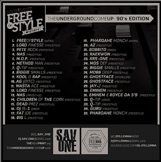 “This mixtape explores early meanings of the term ‘freestyle’ & offers a live mix of some of OUR favorite 90’s ‘freestyle’ verses. Some of the stuff you may not have heard before as we dug mostly on vinyl, cassette tapes & CDs. The tracklist/artwork below will give you a glimpse of what to expect, but we hope the music & mixing will speak for itself. Share freely & thanks for your consideration!”