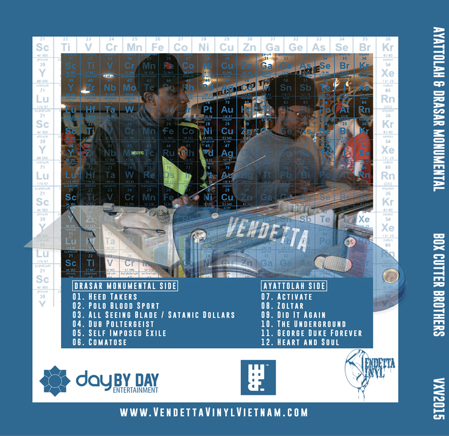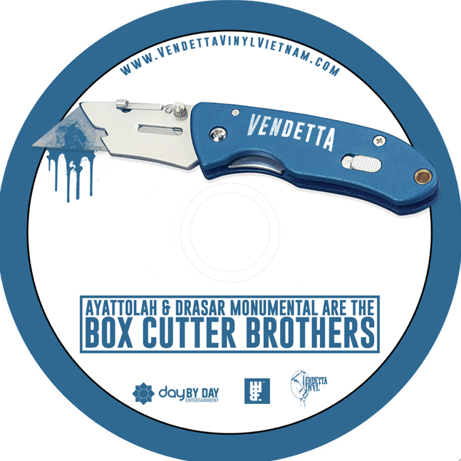 The BOX CUTTER BROTHERS is currently available over at VENDETTA VINYL…If your in the mood to hear an array of sample based, original, provocative chop work – get your copy now before they disappear…..Big up to the 5 star general MF GRIMM for connecting two “real live” Hip Hop dudes..