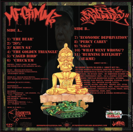 Picking up where the critically acclaimed first album left off, GOOD MORNING, VIETNAM 2-THE GOLDEN TRIANGLE by DRASAR MONUMENTAL and MF GRIMM proves there’s no such thing as a sophomore jinx. Their new release has crafted a world flooded by warlord bars, sinister MC supremacy, political unrest, and detailed crime sagas…